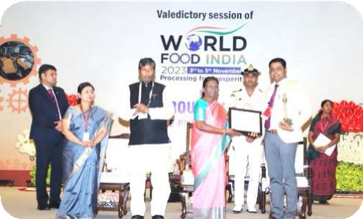 Innovation award was presented for CocoHeal by The Honorable President of India Smt. Droupadi Murmu, in the presence of Honorable Union Minister for Food Processing Industries, Shri Pasupati Kumar Paras and Secretary to department, Smt. Anita Praveen for utilization of Agro-product in medical segment.